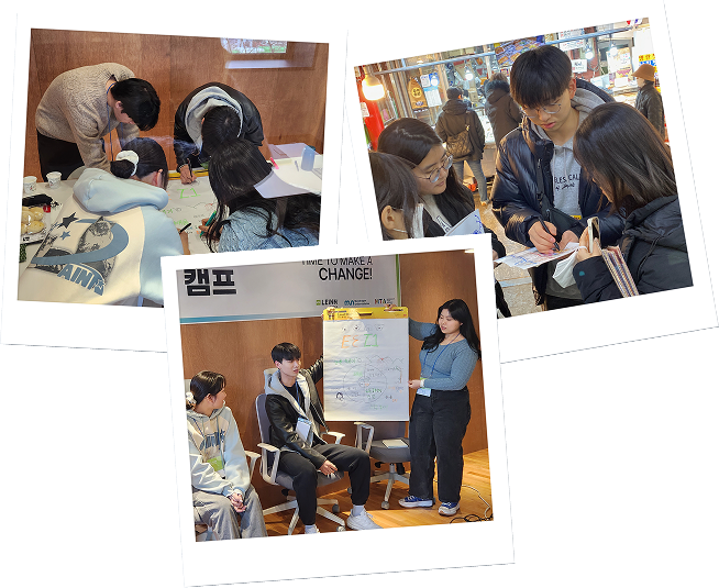 ![]() | ![]() 실전 프로젝트 ‘챌린지 부스’ 운영하기 축제 현장에서 문제를 찾고 직접 기획하고 운영하는 챌린지 부스, 실제 고객 테스트를 통한 실전 프로젝트 |